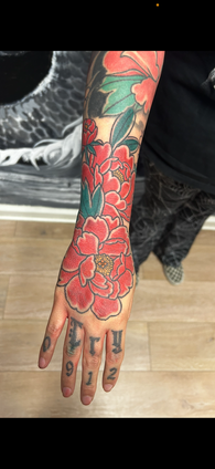 Outside of tattooing, Checo plays in an industrial goth band, spends time drawing, and can talk for hours about video games, movies, and his wild adventures.