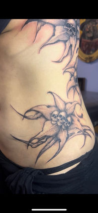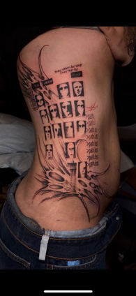Santi has been tattooing for three years and still proudly calls himself a “tatter tot.” From sigils to jewelry, his style leans into black and gray, dark art, realism, anime, and ornamental gothic designs. Santi is highly experimental with his work, drawn to anything that looks cool and refusing to box himself in. Ideally, he wants to merge realism with ornamental design, capturing life’s subjectivity through a mix of observed detail and decorative distortion.